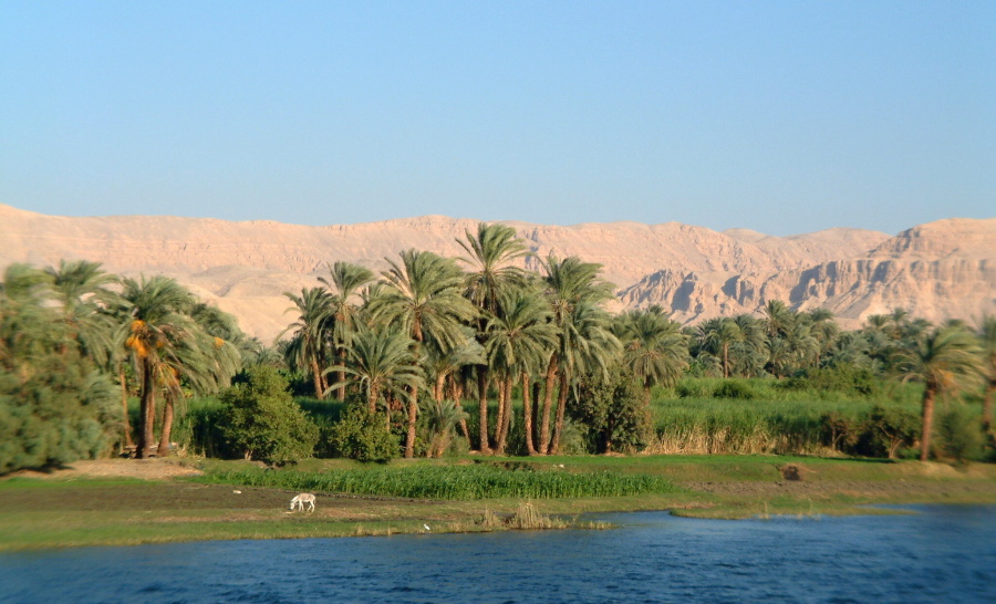 Na západním břehu je pak „říše mrtvých“, četná pohřebiště známá jako Údolí králů a Údolí královen. Téměř 500 let byli faraoni pochováváni do hrobů vytesaných ve skalách. Stěny těchto podzemních hrobek jsou pak zdobeny krásnými reliéfy či malbami. Dále je na západním břehu půvabný chrám královny Hatšepsut, který je částečně vytesán do skály. Shlédnout toto množství památek během jednoho dne by bylo poměrně náročné, a proto jsme měli prohlídku rozloženu do 2 dnů. Přenocovali jsme na lodi a druhý den dopoledne jsme prohlídku dokončili. Na oběd jsme se vrátili na lod a vypluli jsme proti proudu Nilu. Z horní paluby s bazénem a lehátky jsme sledovali měnící se krajinu na březích této mohutné životadárné řeky. Následující den dopoledne jsme přistáli v Edfu, kde nás čekala návštěva chrámu zasvěceného bohu Horovi. Tento krásný chrám je snad nejzachovalejším chrámem celého Egypta. Z Edfu jsme pak pluli dále proti proudu až k chrámu v Kom Ombo. Tento chrám je zasvěcen dvěma bohům, krokodýlímu bohovi Sobekovi a bohu Horovi. Odtud nás již čekala jen plavba do Asuánu.