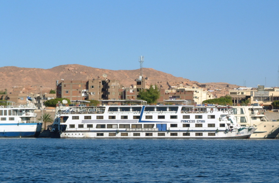 Asuán je nejkrásnější městem nilského údolí a je často nazýván branou do černé Afriky. Leží v oblasti prvního nilského kataraktu, který od starověku tvořil přirozené hranice egyptského státu. Mezi nejznámější asuánské památky patří vykopávky města Abu na ostrově Elefantina. Na Elefantině se nachází i núbijské vesnice Koti a Siou se svébytnou kulturou. Kitchenerův ostrov je znám pro svoji botanickou zahradu. Na západním břehu Nilu lze navštívit hrobky faraonských hodnostářů, shlédnout mauzoleum Agy Chána či se vydat k o něco vzdálenějším rozsáhlým zříceninám kláštera sv. Simeona ze 7. století. Na východním břehu zaujme návštevníky především moderní Núbijské muzeum a starověké lomy. Žula z asuánských lomů byla využívána po celý starověk a najdeme ji téměř na každé egyptské stavbě. Turisticky populární je nedokončený obelisk královny Hatšepsut, jehož výška měla být 42 metrů a hmotnosti 1 168 tun. Obelisk během výroby prasknul a práce byly zastaveny Na skále poblíž prvního nilského kataraktu se tyčí hotel Old Cataract, ve kterém bydlívala spisovatelka Agatha Christie, která sem umístila část děje svého románu Smrt na Nilu. Necelých 300 km od Asuánu se nachází proslavený komplex Abu Simbel, a právě sem jsme si ještě na lodi objednali výlet. Vyjíždělo se brzy ráno a tak si mnoho spolucestujících vzalo sebou do autobusu z kajut polštáře. Abu Simbel je archeologická lokalita na území historické Núbie, dnes v jižním Egyptě, na západním břehu Násirova jezera, součásti Vysoké asuánské přehrady. Nacházejí se zde dva starověké egyptské chrámy vytesané do skalního masivu ve 13. století př. n. l. v době vlády třetího panovníka 19. dynastie Ramesse II. Velký chrám Chrám byl zasvěcen nejvyšším bohům Horního a Dolního Egypta, Amenreovi a Reharachtejovi; vedlejší kult zde měl i Ptah a sám zbožštěný Ramesse II. Chrám je orientován přesně k východu a byl postaven tak, že dvakrát do roka, o jarní a podzimní rovnodennosti, ozářilo vycházející slunce sochy tří božstev vytesané v západní stěně nejzazší kaple, ležící 65 metrů hluboko ve skalním masivu. Socha Ptahu boha temnoty a podsvětí zůstává neosvětlena. Průčelí chrámu vévodí čtyři sedící, přes 20 metrů vysoké kolosy Ramesse II., mezi jejichž nohama stojí sochy dalších členů královské rodiny. Při stavbě asuánské hrozilo zatopení tohoto komplexu a proto se v roce 1959 rozeběhly přípravy na přemístění tohoto obrovského komplexu. Všechny místní památky musely být rozřezány na velké bloky vážící až 30 tun (v průměru měly 20 tun), rozebrány, převezeny na novou lokaci o 65 metrů výše a tam znovu sestaveny. Mnohými je tento přesun dosud považován za největší počin archeologického inženýrství v historii.