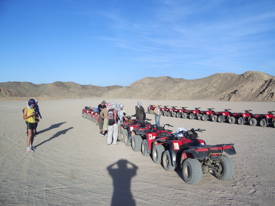 V rámci poznávání nabízených destinací jsem se tentokrát vypravil do Egypta. Na letišti v Praze-Ruzyně jsme nastoupili do letadla ČSA, které nás bezpečně dopravilo do egyptské Hurghady. V Hurghadě jsme měli strávit několik dní před zahájením poznávacího okruhu. Tyto dny jsem využil k prohlídce hotelů jak v samotné Hurghadě, tak i v sousední Safaga a El Gouna. Kromě hotelů jsem měl v plánu vyzkoušet i některé nabízené výlety. Nejprve jsem zvolil šnorchlování u korálových útesů poblíž ostrůvku Giftun. Vyplouvali jsme přímo od našeho hotelu krátce po snídani a již za necelou hodinu plavby jsme zakotvili na místě prvního šnorchlování. Rudé moře patří mezi nejznámější a nejnavštěvovanější potápěčské destinace světa, a při „pouhém“ šnorchlování je toho mnoho k vidění. Ani my jsme nebyli rozhodně zklamáni. Množství barevných rybek všude okolo nás, nádherné korálové útesy a to vše v teplém moři. Po prvotním šnorchlování byl čas oběda podávaného přímo na lodi a pak jsme se přesunuli na pláž ostrova Giftun. Z ostrova jsme pak zamířili zpět k Hurghadě s ještě jednou zastávkou na šnorchlování u jiného útesu. Do hotelu jsme se vrátili před 5. Hodinou odpoledně a tak jsme měli dost času se připravit na večeři. Jako další výlet jsem vybral návštěvu beduinské vesnice na čtyřkolkách s večeří. Výlet jsme si zakoupili přímo na hotelu, kde nám prodávající doporučil čtvrtek, kdy již má skupinu Čechů. Naneštěstí se z Čechů vyklubali Rusové. Mikrobusem jsme odjeli od hotelu na základnu firmy provozující zmiňované čtyřkolky. Tam proběhlo zaškolení obsluhy vozidel, vzhledem ke složení skupiny v ruštině. Ani instruktáž v rodné řeči našim spoluvýletníkům nepomohla a my jsme se během rozřazování po zaváděcích kolech dostali na čelo celé kolony. A pak jsme již uháněli pouští do beduínské vesnice. Po příjezdu následovala prohlídka vesnice, jízda na velbloudech a pak již přesun do beduínského stanu, kde se podávala večeře. Po večeři jsme shlédli folklorní představení a již za tmy jsme vyrazili zpět. Noční jízda skončila bez nehody a tak jsme před půlnocí přijeli zpět do hotelu.