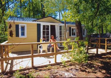 Lousiana Typ 8 - až pro 8 osob, chata v koloniálním stylu, velká obytná místnost s gaučem pro 2 osoby, v kuchyni myčka nádobí, dvě ložnice s francouzskými postelemi, ložnice s palandami, elektrické vytápění, cca 45 m2