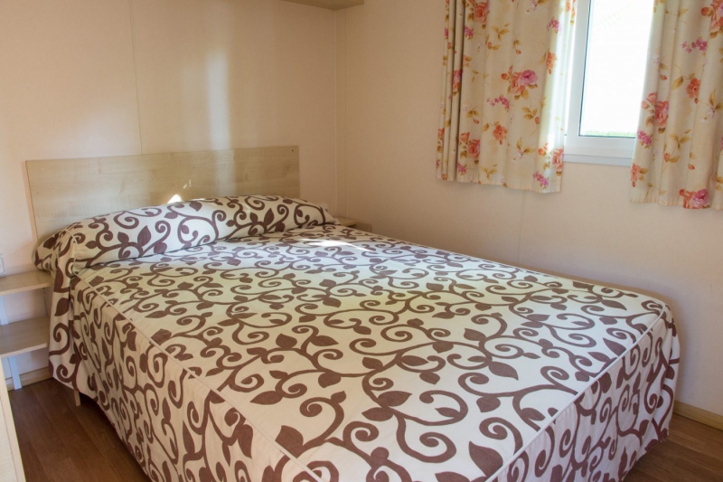Typ 1 Standard - pro 2-4 osoby, 1 ložnice s francouskou postelí 1,35x1,9m, 1 ložnice se 2 lůžky, krytá terasa 5m2, velikost mobilhomu 27 m2